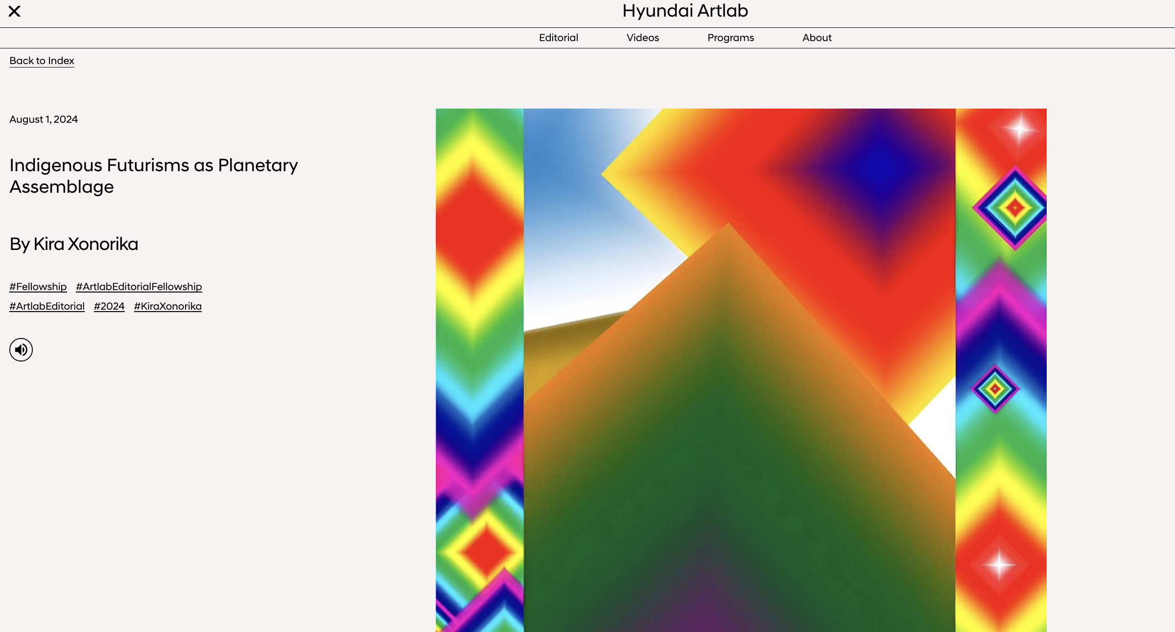 Kira Xonorika featured artwork from this exhibition in their article "Indigenous Futurisms as Planetary Assemblage" for the Hyundai Art Lab.